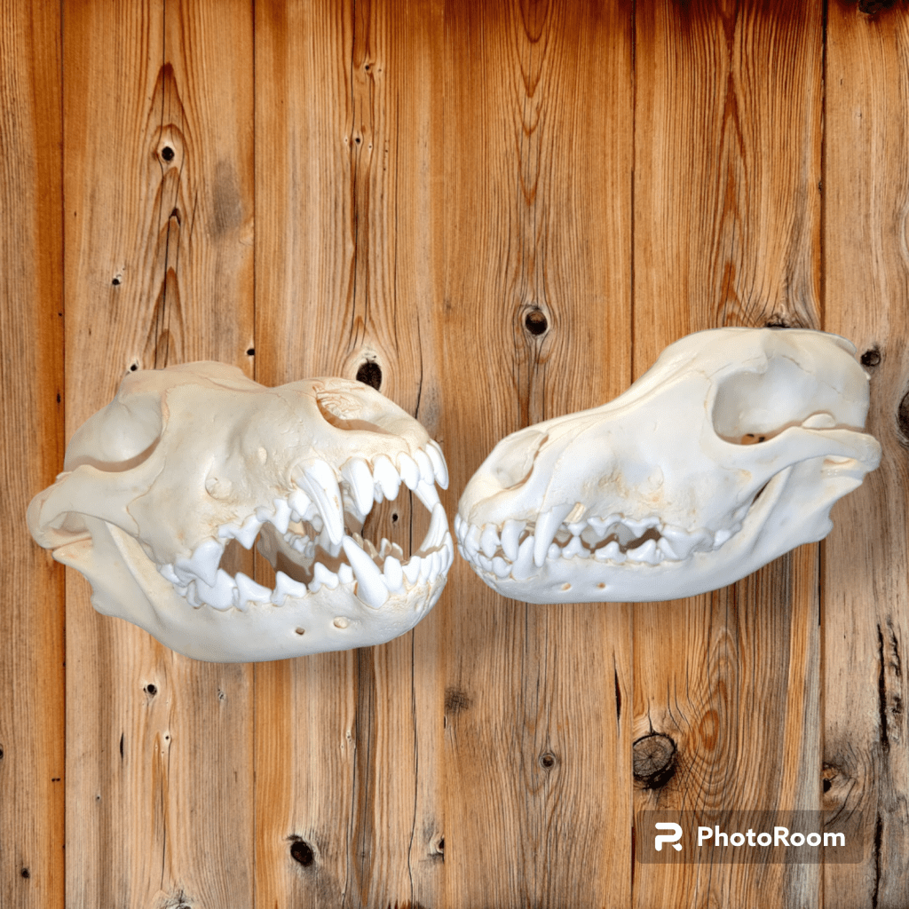 Véritables crânes de Loups gris blanchis personnalisables (prix variable selon la demande du client)